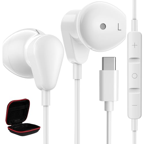USB C-hörlurar för iPhonne 16 15 Pro, in ear hörlurar med kabel mikrofon typ C-headset USB C-anslutning för Samsung Galaxy A55 A35 A54 A34 A16 5G S24 FE S23 iPad Air Mini Xiaomi 14T 13 Pixel 9 8a, vit