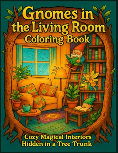 Gnomes in the Living Room to Color – Magical Interiors Hidden in a Tree Trunk: Coloring Book