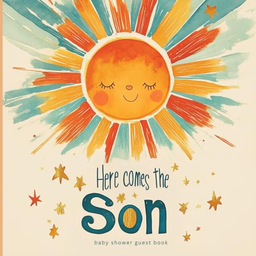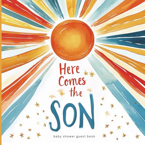 Here Comes the Son Baby Shower Guest Book: Watercolor Sunshine & Gold Stars Theme • Baby Boy Shower Keepsake with Guest Sign-In, Wishes for Baby, Advice Pages, Photo Section & Gift Log