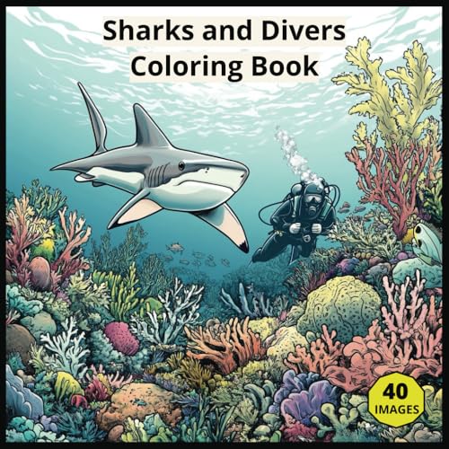 Sharks and Divers Coloring Book: Explore the world of fearsome sharks and brave scuba divers in this 40 image underwater coloring adventure