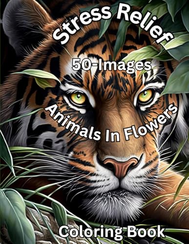 Stress Relief – 50 images - Animals In Flowers Coloring Book: Dive into the world of creativity with this 104-page coloring book, specially designed ... each image to prevent ink bleed-through.