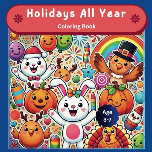 Holidays All Year: Coloring book for kids ages 3-7. Happy Halloween, Thanksgiving, Christmas, Easter, Independence Day other traditional American holidays (Learn and Color).