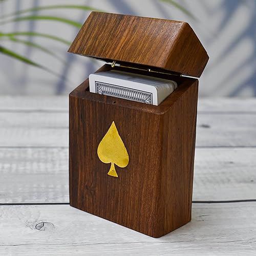 India Hushåll – spelkorthållare, handgjord trälåda med mässingsinläggsdesign, årsdagspresenter "Made in India" (design 3)