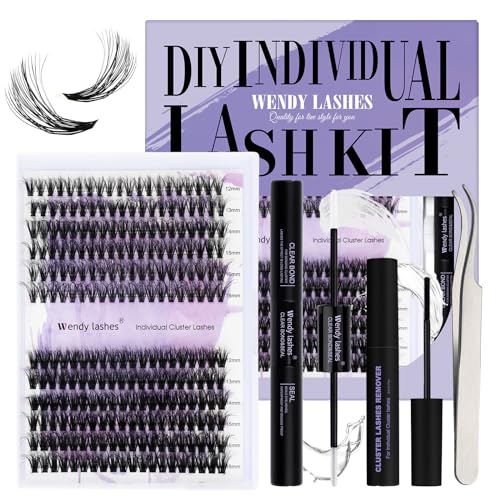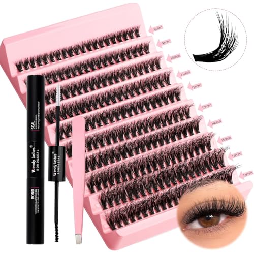 DIY fransförlängningssats 3D-effekt Clusters fransar Kit D Curl 0.07 80D 8-16mm individuella fransar Fluffiga fransar Clusters med Lash Bond och Seal Lash Applicator DIY fransförlängningar hemma