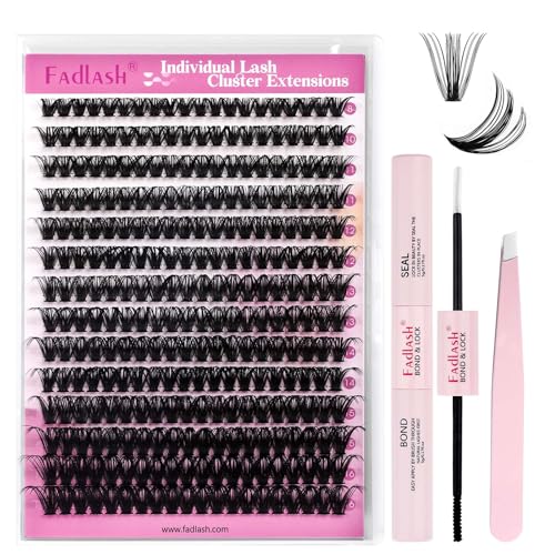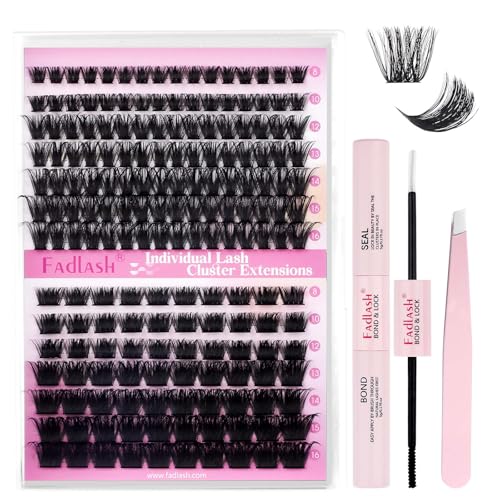 FADLASH DIY fransförlängningssats 80D + 100D 0.07 D Curl 8-16mm Natural 3PCS Individuella fransar, franslimning och tätning, Cluster Lashes Lash Extension Set Volume för nybörjare