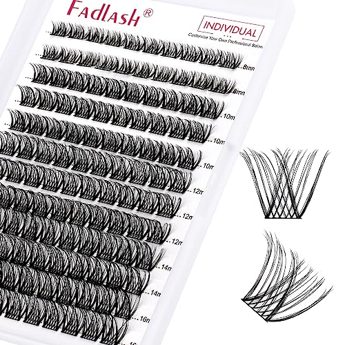 FADLASH Individuella fransar med klart band 100P + 200P DIY klusterfransar Naturligt utseende falska fransar Wispy 0.07D Curl konstgjorda minkfransar 12-18mm ögonfransförlängningar