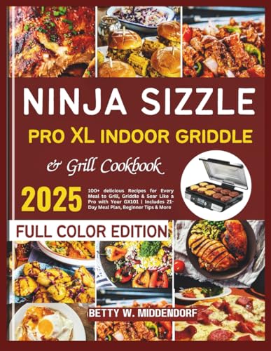 Ninja Sizzle Pro XL Indoor Griddle & Grill Cookbook: 100+ delicious Recipes for Every Meal to Grill, Griddle & Sear Like a Pro with Your GX101 | Includes 21-Day Meal Plan, Beginner Tips & More