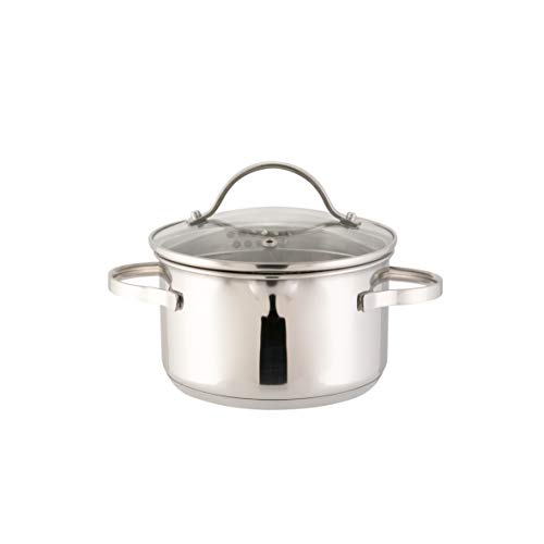 axentia Saucepan Pado with lid made of glass, cookware made of stainless steel, induction hob for all types of cookers, Ø approx. 16 cm, Volume: approx. 1.5 l