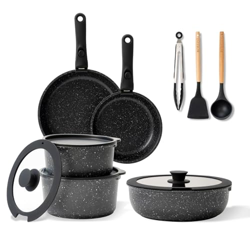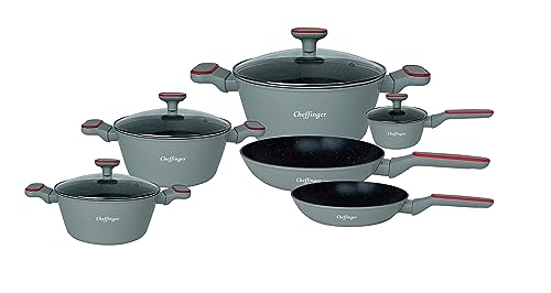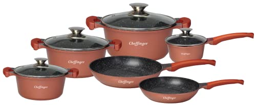 Cheffinger 10 delar köksredskap set kastrull induktion aluminium gjutpanna grytset kastrullset marmor koppar