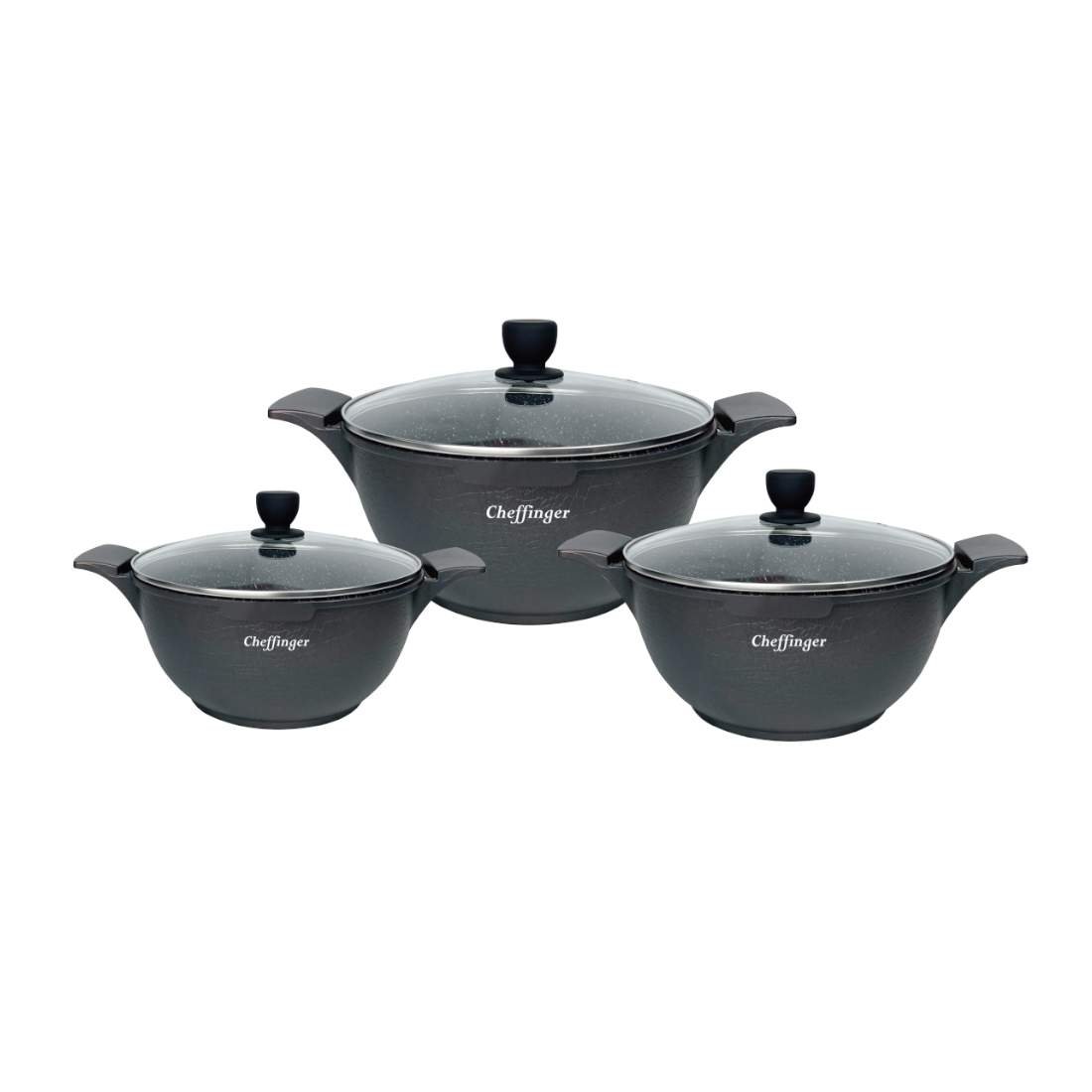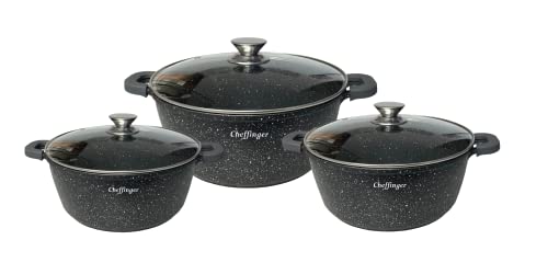 Cheffinger Köksredskap set i 6 delar 32/36/40 cm kastrull induktion gjuten aluminium kastrullset marmor 32/36/40 cm