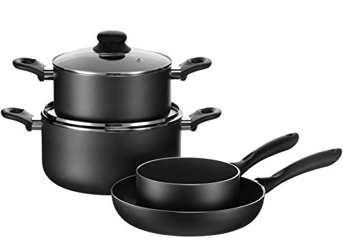 Grytset, HOMELUX kastrullset induktion 10 delar, induktionskrukor set, krukor med glaslock, kastrullset, krukor och stekpannor, lämplig för induktion, svart