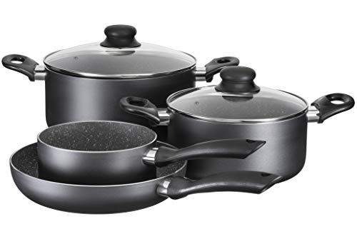 MÄSER 931737 serien Izar, kastrullset med non-stick-beläggning, lämplig för induktion, innehåller 2 kastruller med lock, 1 stekpanna, 1 gryta, aluminium, svart