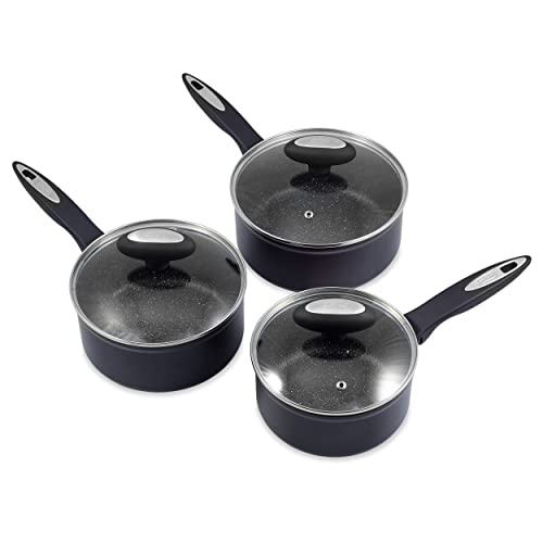 Zyliss E980143 Ultimate Non-Stick 3-delars kastrullset med lock | flera storlekar | smidd aluminium | svart | Rockpearl Plus non-stick teknik | lämplig för alla hällar inklusive induktion