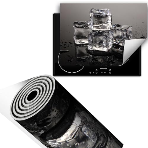 TMK ArtDeko spisskyddsplatta en del 70 x 52 cm kök spisskydd keramikhäll täckplatta spishäll skydd induktionshäll rullbar, isbitar grå