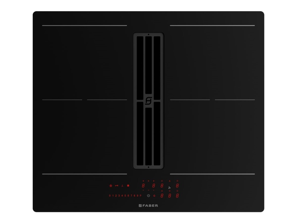 Faber Galileo Slim F600 - Induktionshäll - 4 Kokplattor - Fördjupning - Bredd: 56 Cm - Djup: 49 Cm - Klass A+ - Svart Med Nedåtgående Avgasutsläpp (Recirkulation)