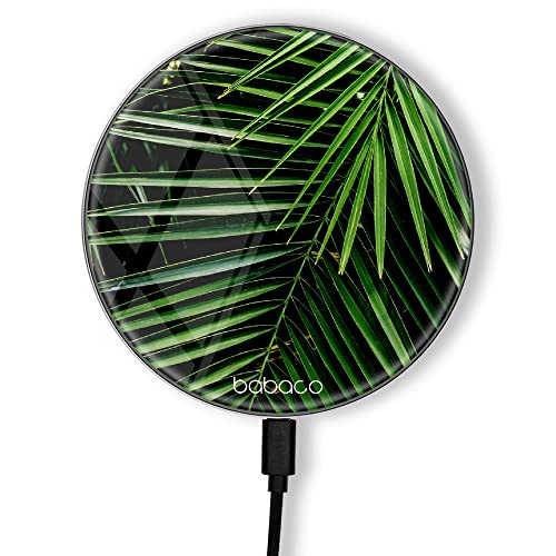 ERT GROUP Original och officiellt licensierad av Babaco Induktionsladdare, Mönster Plants 002 Green Glas Trådlös Laddningsdocka, Micro USB-kabel 1 Meter 10W