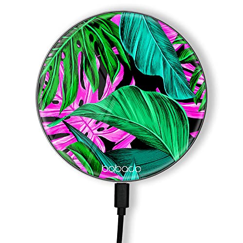 ERT GROUP Original och officiellt licensierad av Babaco Induktionsladdare, Mönster Plants 004 Multicoloured Glas Trådlös Laddningsdocka, Micro USB-kabel 1 Meter 10W