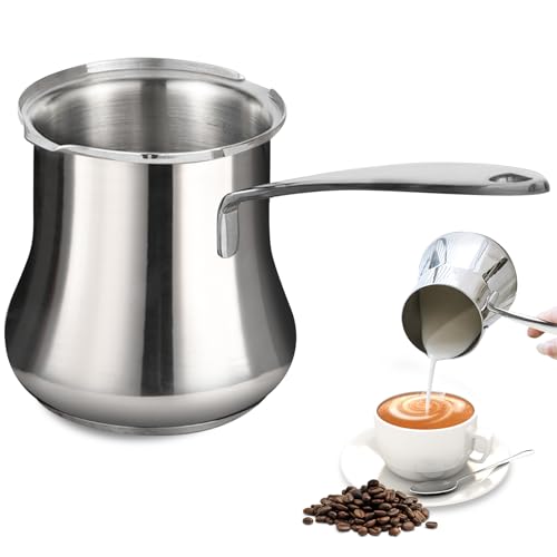 Turkisk kaffekanna, turkisk kaffekokare, 500 ml mjölkkanna 304 rostfritt stål, turkisk mockakanna, arabisk mockakanna för induktionsspis, keramikhällar och öppen låga