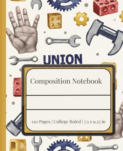 Composition Notebook College Ruled -: Union Organizer at Work (120 Pages, 7.5x9.25 inches) // Vintage-Inspired Design // Solidarity Symbols // Industrial Motifs // Deep Blue and Gold Palette