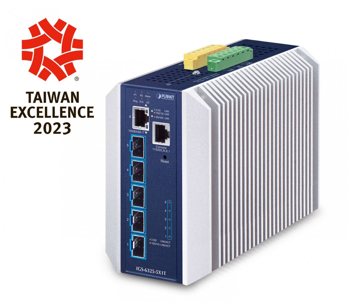 PLANET Industrial Layer 3 5-Port Managed L3 10G Ethernet (100/1000/10000) Aluminium, Blue