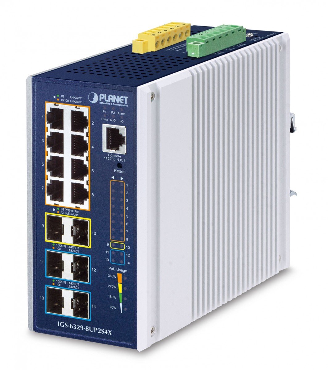 PLANET Industrial 8-Port GE PoE+ 2*1G SFP+ 2*2,5G SFP - 8-Port Managed L2+ Gigabit Ethernet (10/100/1000) Power over Ethernet (PoE) Aluminium, Blue