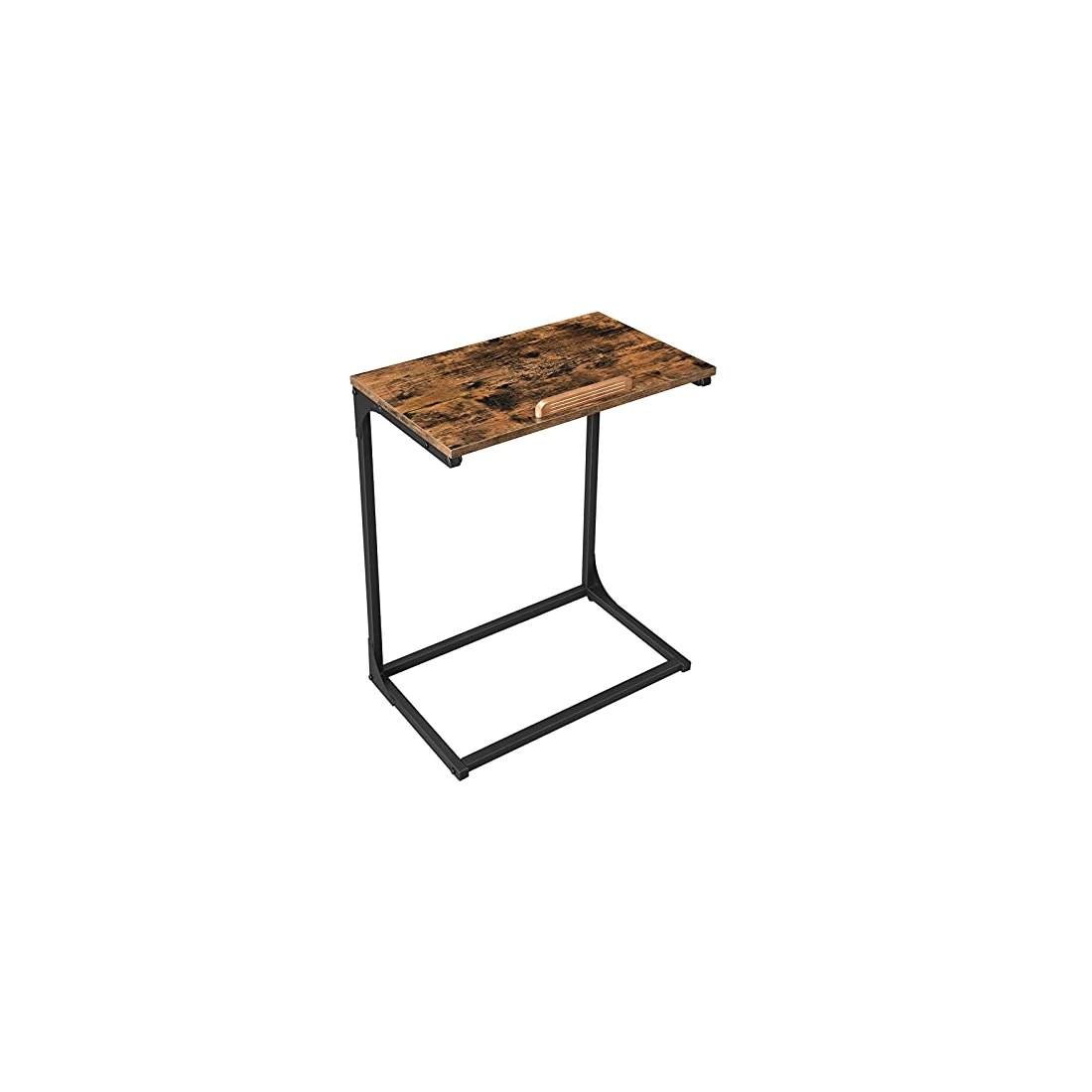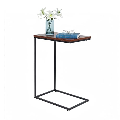 Aibiju Uppsättning av 2 C-formade sidobord, soffbord, laptop-kaffebord, industriellt, för vardagsrum, sovrum, rustik brun och svart metallram, YD-TM051HB-2