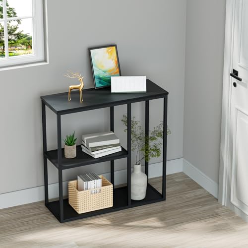 WOHOMO Konsolbord, 30 cm, smalt entrébord för vardagsrum, 80x80 cm, svart industriellt soffbord med 3-nivåer och förvaringshyllor, för korridor, hall, svart