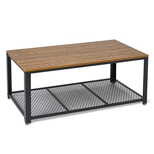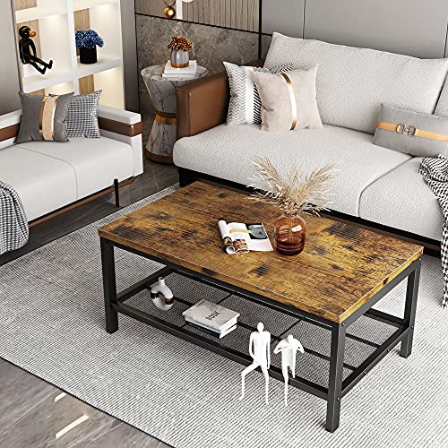GMBAYUE 2-Vånings Soffbord Med Förvaringshylla, Rektangel Mittbord, Industriellt Soffbord, Vintage Trä Cocktailbord För Vardagsrum, Hem, Lägenhet, Enkel Montering (Color : Large cedar walnut color)
