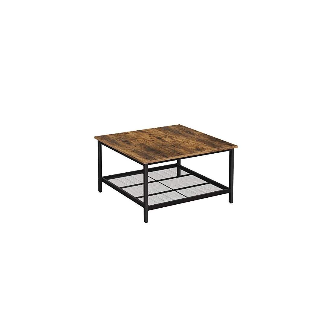 Meerveil Soffbord, vardagsrumsbord med rutnät, metallram, industriellt soffbord, för vardagsrum, sovrum, 106 x 60 x 45 cm, vintagebrun-svart