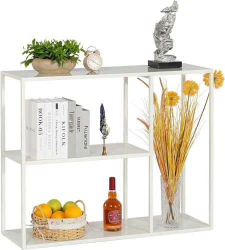 HDANI 3 våningar metallkonsolbord med förvaringshylla entrébord. Industriellt soffbord. Lämplig för vardagsrum, hall, sovrum, kontor etc. (vit)