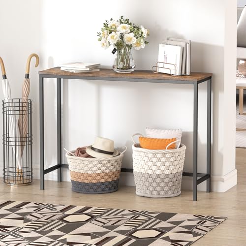 Lifewit 100 cm Konsolbord, Smalt Soffbord med Metallram för Vardagsrum, Industriellt Långt Bord för Hall, Ingång, Kontor, Korridor, Kaffebord Bakom Soffa, Enkel Montering, Rustik brun