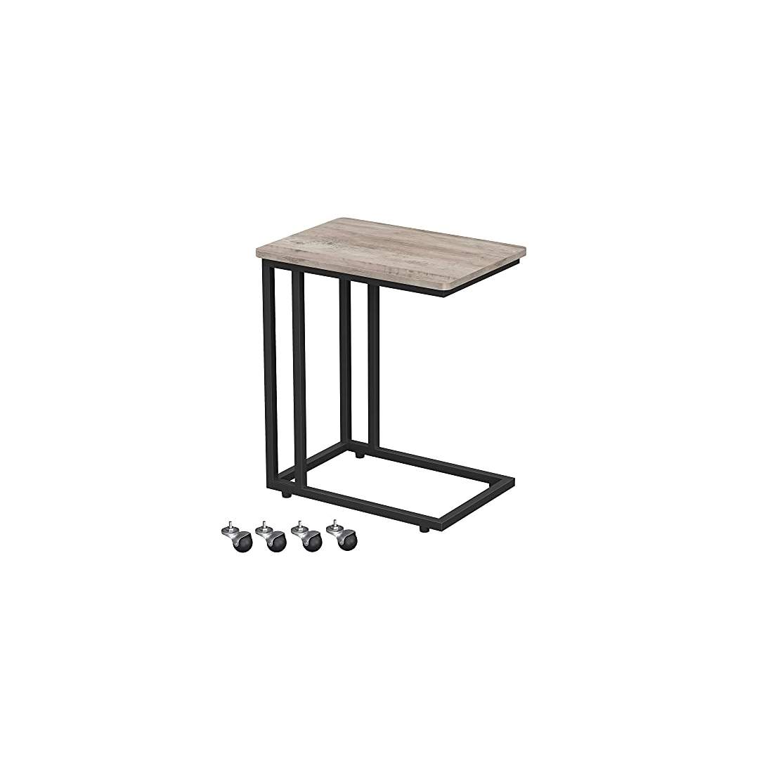 COSTWAY sidobord C-format med laddningsstation, soffbord med utdragbar bordsskiva och sidoficka, soffbord med hjul, industriellt för vardagsrum, sovrum (grå)