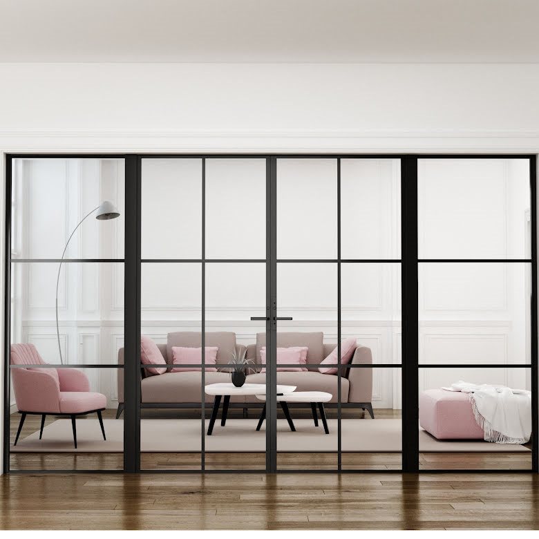 Industrivägg Nooli Handtag 2 dörr + 2 väggar överliggare B400 cm x H250 cm Svart