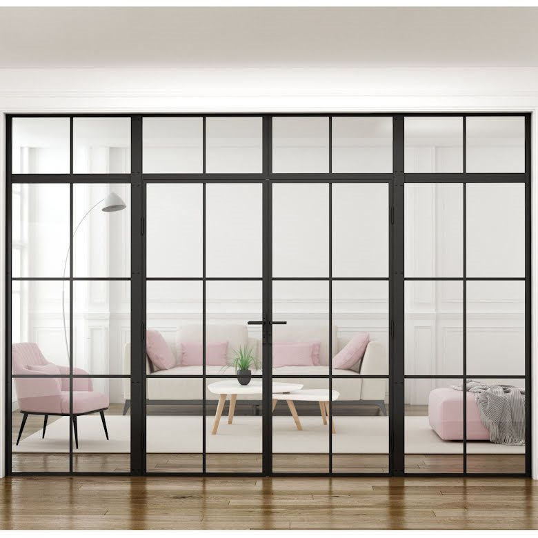 Industrivägg Nooli Handtag 2 dörr + 2 väggar överliggare B400 cm x H240 cm Svart