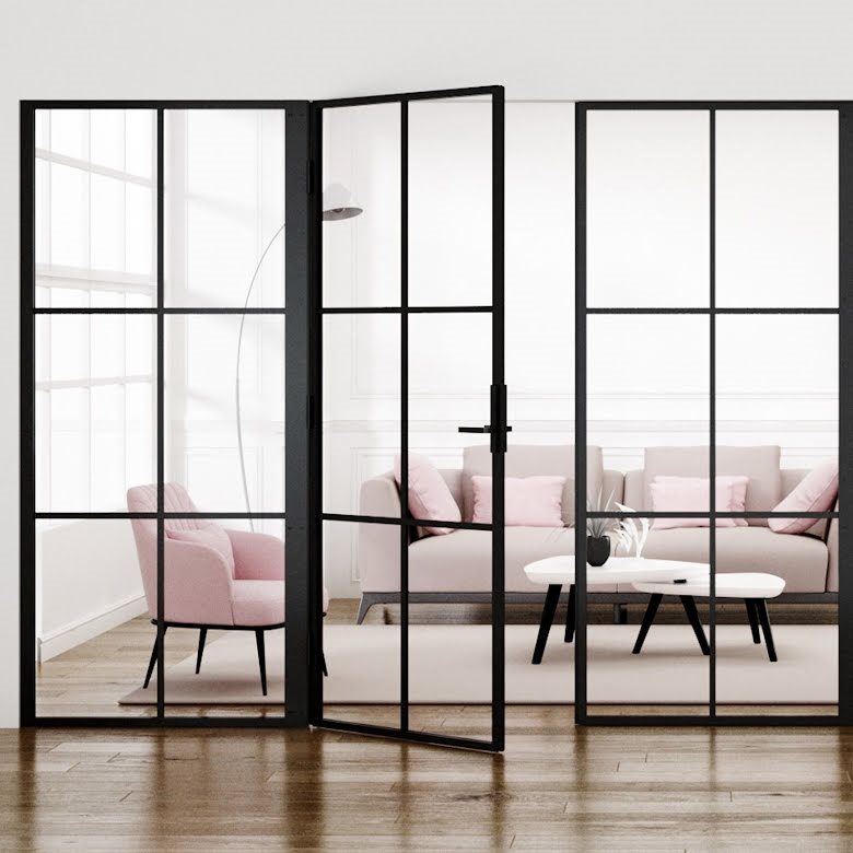 Industrivägg Nooli Handtag dörr + 2 väggar B300 cm x H205 cm Svart