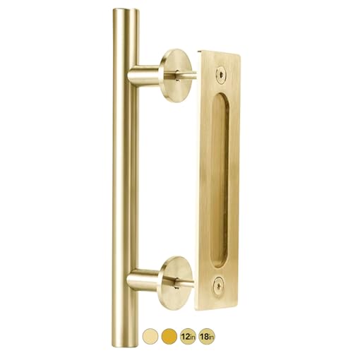 Rio Salto: borstad mässing och guld, ladugårdsdörrhandtagen, garderobsdörrhandtag i aluminium, draghandtag och infällt handtag set, robusta stora skjutdörrhandtag (inkluderar paket med 1 dörr).