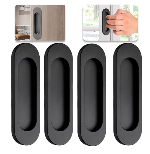 Självhäftande dörrhandtag 4-pack, självhäftande balkongdörrhandtag, självhäftande ovala skjutdörrhandtag, aluminiumlegering, infällt handtag för skjutdörrar, fönster, skåp (mattsvart, 100 mm)