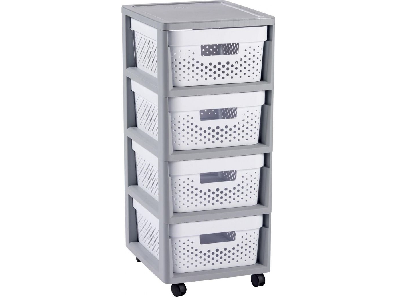 Curver Chariot À Roulettes Infinity - 4 Tiroirs De 10 L - Roulettes - Table D''appoint - Blanc