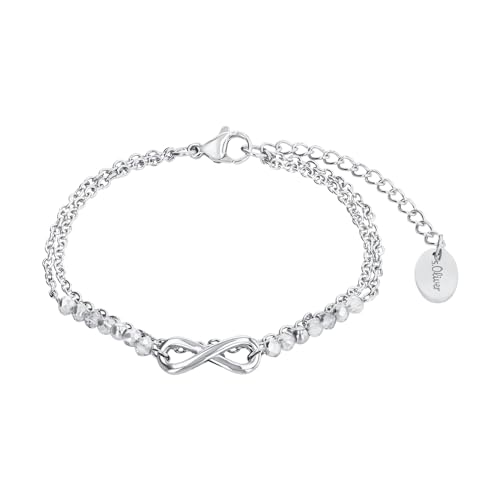 s.Oliver armband rostfritt stål armsmycken för damer, med glas, 16+4 cm, Silver, Infinity, Kommer i smyckespresentask, 2022717