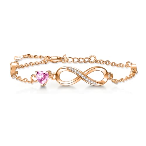 Cosie Lily Infinity Armband Kvinnor 925 Sterling Silver Rose Guld, Infinity Heart Armband Kristaller Justerbart armband, Födelsedagssmycken presenter till flickor Flickvän Dotter Kvinnor