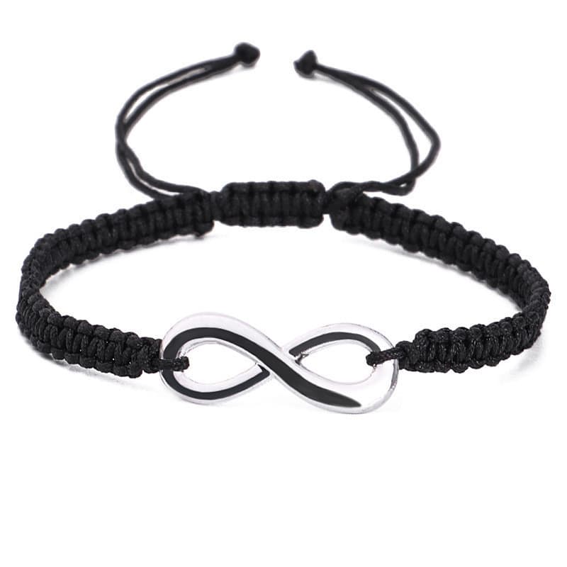 Infinity-armband för kvinnor, handgjort svart flätat armband med 925 silver just
