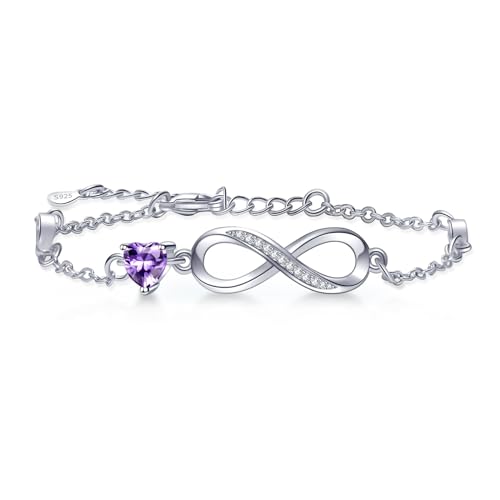 Leafael Infinity Kärlek Hjärta Armband dam, födelsesten Armband för kvinnor med helande stenar, allergifria smycken för kvinnor, silverfärgat Armband med presentförpackning