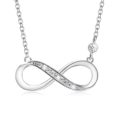 Aucuu Damhalsband Infinity, 925 sterling silver damkedja, justerbar vänskapskedja och glänsande zirkon, smyckesgåvor för dam/mamma/flicka/flickvän, Sterlingsilver, Kubisk zirkonia