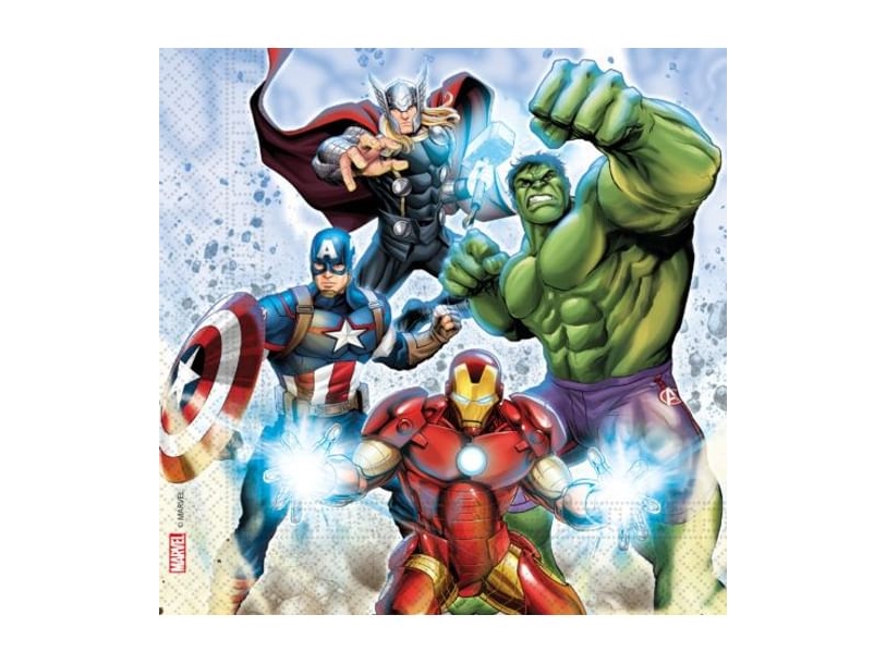 Marvel Avengers Infinity Stones partyservis kit för 24 personer (112 st: 24 tallrikar Ø23 cm, 24 tallrikar Ø20 cm, 24 glas 200 ml, 40 servetter 33 x 33 cm)