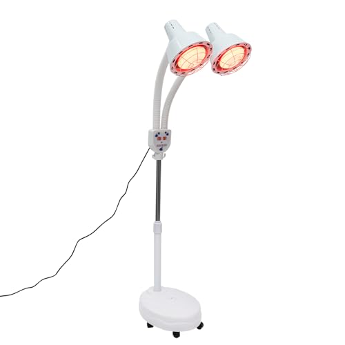 275 W infraröd lampa, värmelampa, dubbelhuvud, infraröd lampa, värmelampa, 360° lampa, massagelampa, röd ljusstrålkastare, värmelampa med hjul för salong, massage