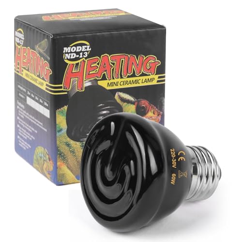 Adiwo keramisk värmelampa 220V, E27 60W svart reptilvärmelampa, 20 000 timmars livslängd, infraröd värmelampa för djur Ödlor, sköldpaddor, kycklingar, ormar