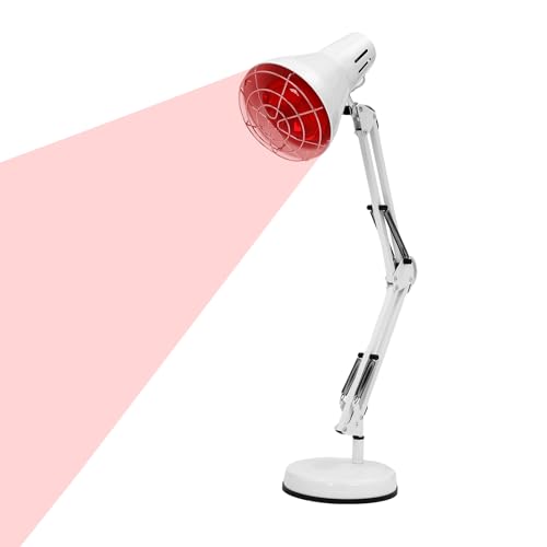GAOUSD Infraröd lampa – värmelampa – rött ljus – terapi – fjärrkontroll – justerbar temperatur – lämplig för hem och kontor (vit)