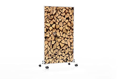 Könighaus stående infravärme med motiv – 450 Watt – sparar energi = värmer inom 2 minuter – med ståfötter och termostat – stående flyttbar infravärmare – snyggt motiv: Träbräda