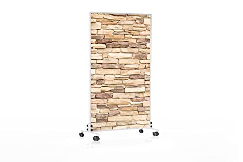 Könighaus stående infravärme med motiv – 1000 Watt – sparar energi = värmer inom 2 minuter – med ståfötter och termostat – stående flyttbar infravärmare – snyggt motiv: Sten
