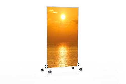 Könighaus stående infravärme med motiv – 450 Watt – sparar energi = värmer inom 2 minuter – med ståfötter och termostat – stående flyttbar infravärmare – snyggt motiv: Sol